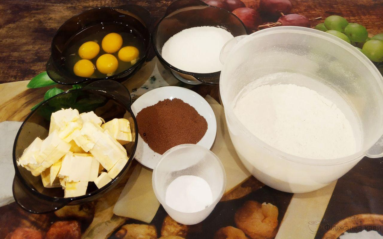 6. Тісто ділимо на дві частини. В одну частину додаємо какао, перемішуємо до однорідності.