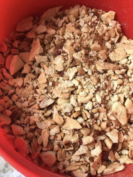 Крекер і арахіс подрібнений щоб залишався невеличкими кусочками,