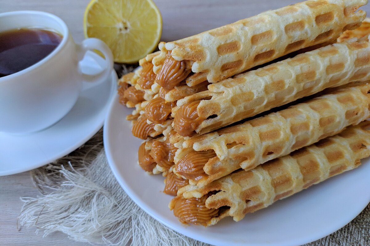 Як давно Ви готували вафельні трубочки? Вафлі, приготовані за цим рецептом, виходять рум’яними, хрусткими, прямо як з дитинства. Свіжоспеченим вафлям можна надати форму як трубочок, так і ріжків. Як начинки будемо використовувати варене згущене молоко, але і без начинки вони шалено смачні.