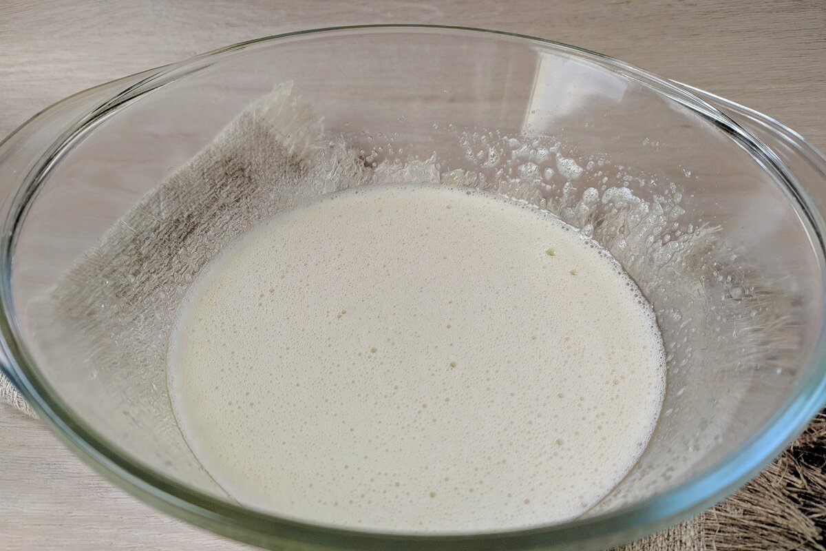 3. Збиваємо вінчиком або міксером. Всипаємо цукор і продовжуємо збивати до розчинення.