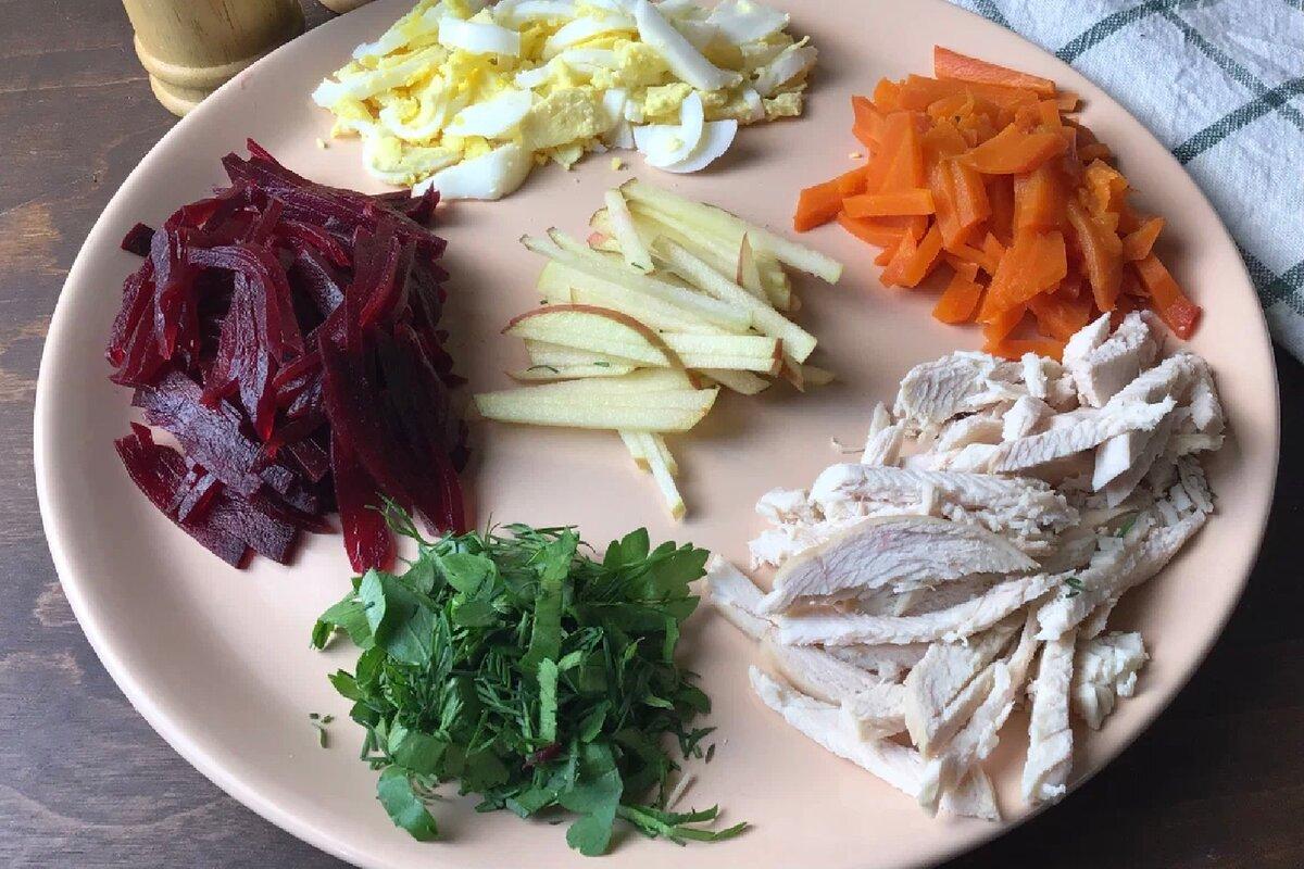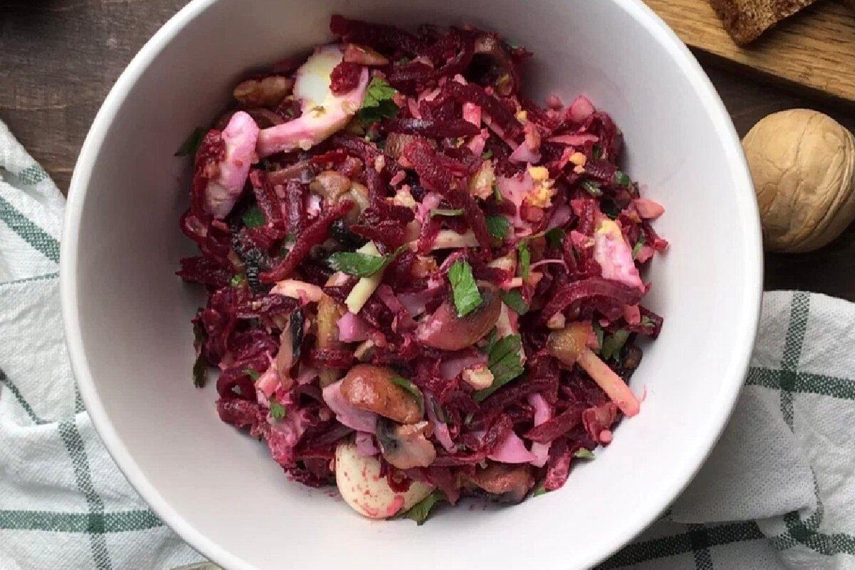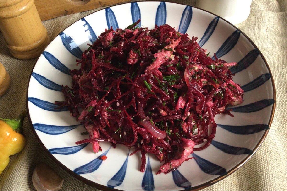 Салат “Чоловічий” з вареним бурячком і курячою грудкою