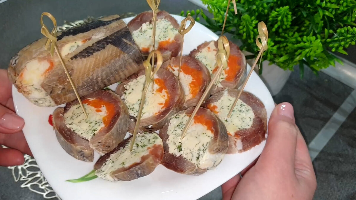 Сьогодні я готую смачну і ефектну в подачі закуски із риби та сирною начинкою – це дуже смачно і красиво, тому не забувайте зберегти рецепт, і приготувати до свого святкового столу!