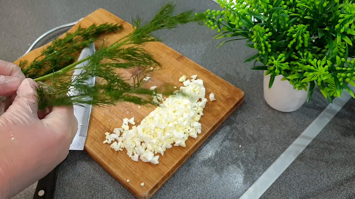 Беру 2 гілочки кропу, мені знадобляться тільки м’які частини, стебла я прибираю. Дрібно подрібнюю кріп.