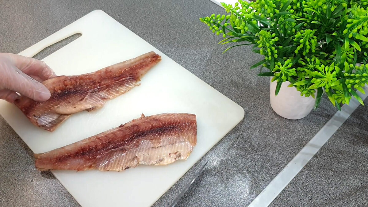 Я взяла 1 оселедець слабосолоний, видалила хребет, всі кістки, зняла шкіру.