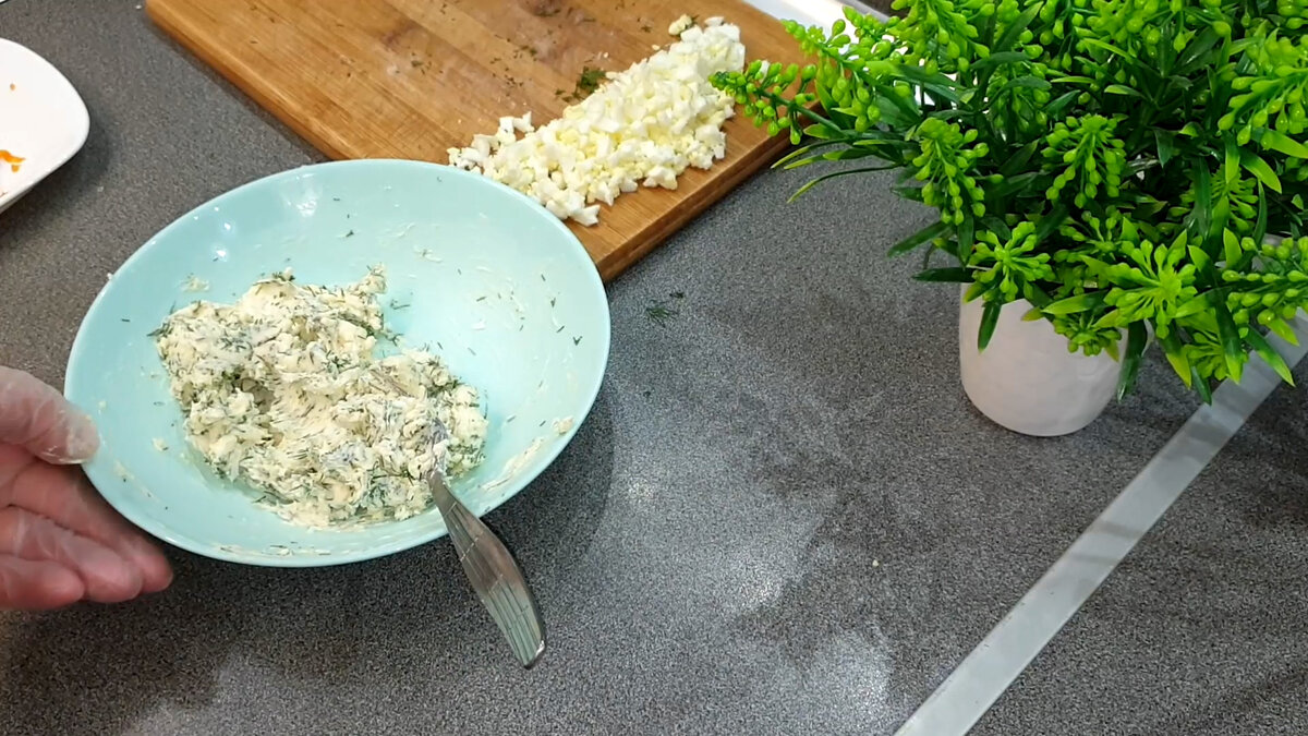 1 відварене куряче яйце я нарізаю ножем, можна потерти на терці.