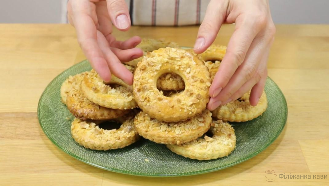 Здобні кільця із мигдалем – це варіант смачного домашнього печива. Мигдаль можна замінити на будь-які інші горіхи.