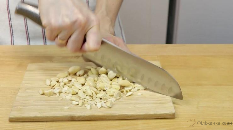 Горіхи рублю ножем. Мигдаль можна замінити на інші горіхи.