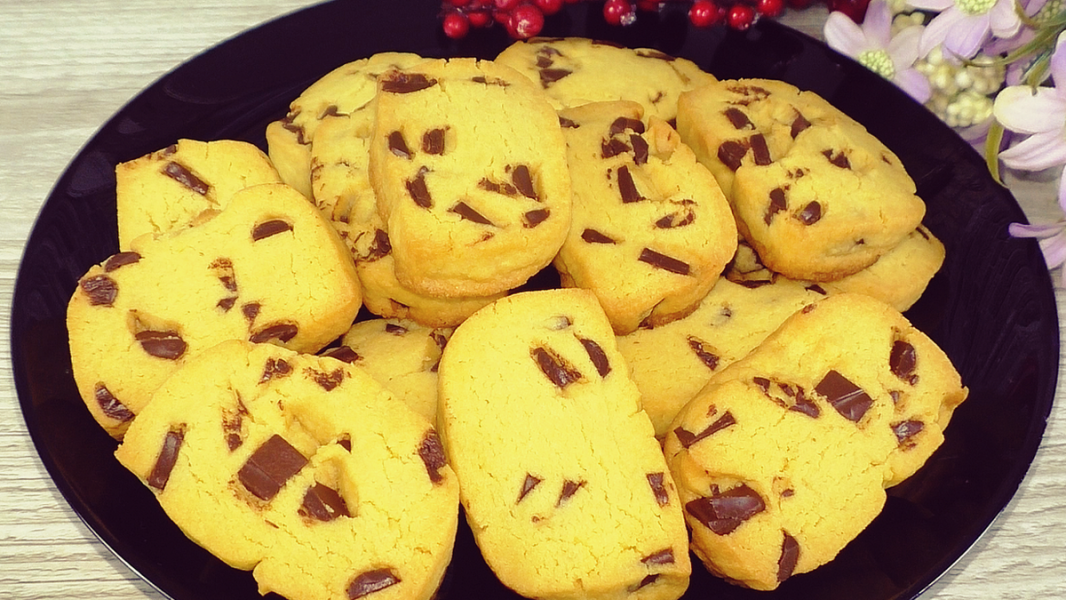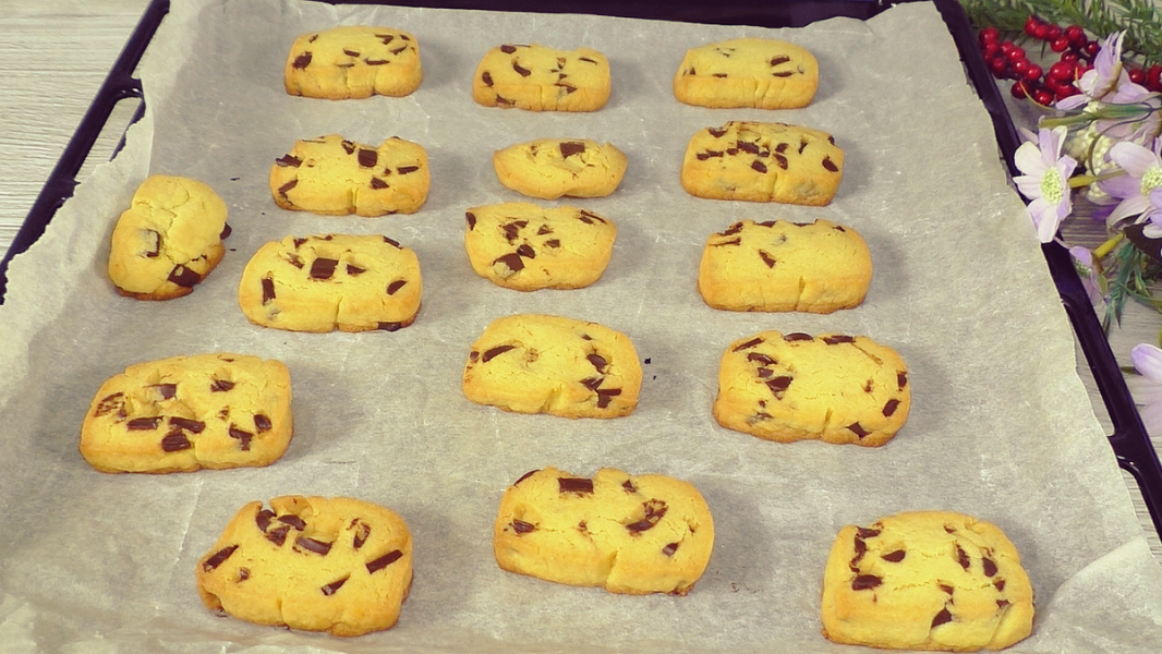 У нашій родині це розсипчасте печиво люблять усі. Поєднання смачного пісочного тіста та шоколаду “зачаровує” своїм приємним та насиченим смаком. Шоколад можна виключити з рецепту, вийде також смачно. За бажанням у тісто можна додати будь-які сухофрукти чи горіхи. З шоколадом все ж таки смачніше і для рецепту його знадобиться зовсім небагато.