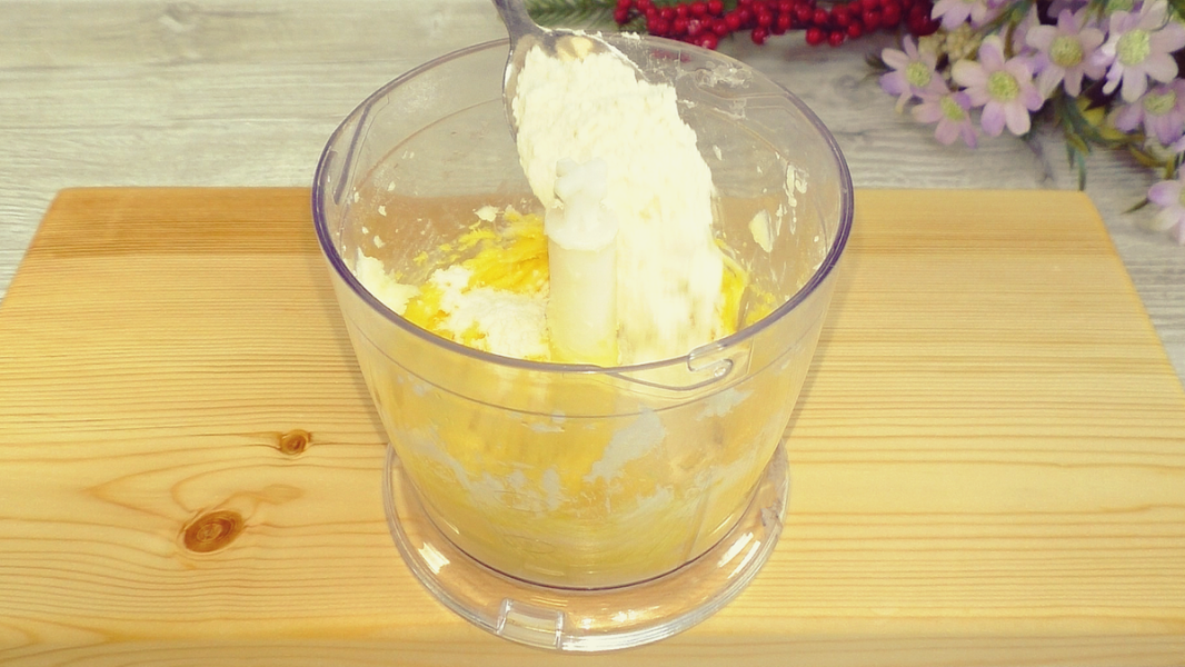 Так як тіста невелика порція, я замішуватиму в блендері, можна використовувати міксер.