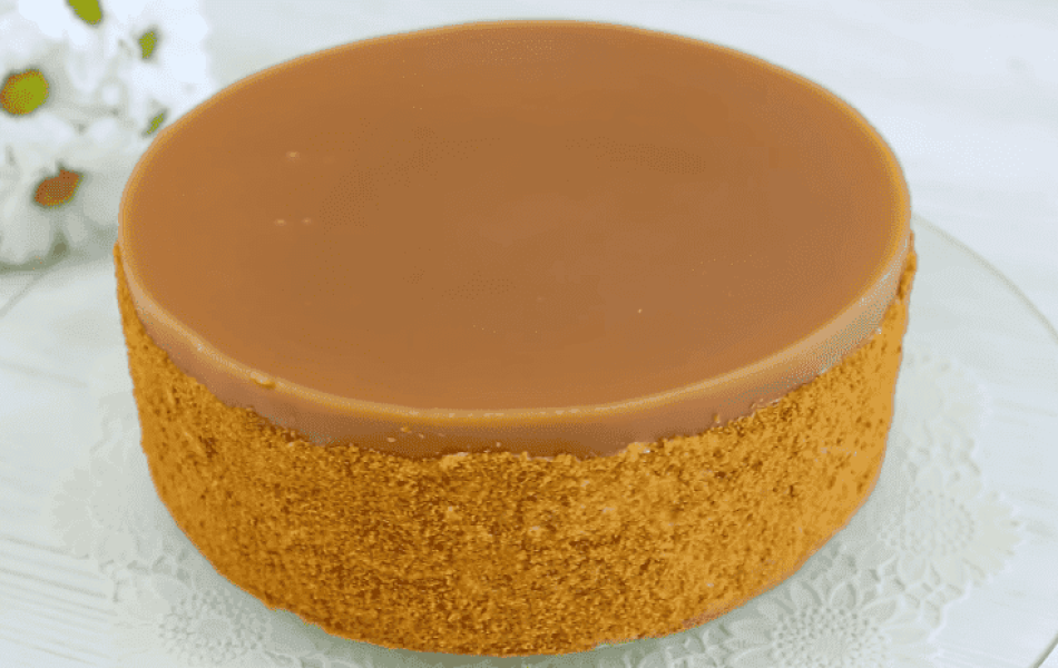 Торт покритий подвійною порцією карамельного мусу, але однієї порції достатньо.