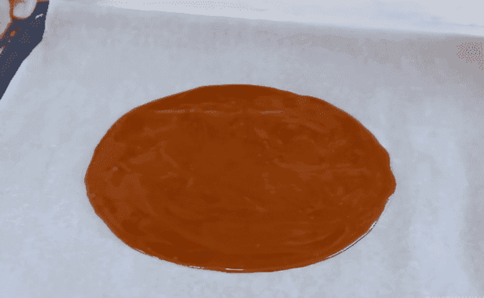На іншому пергаменті на деку вилийте решту тіста. І випікаємо корж при 170 градусів 17 хвилин.