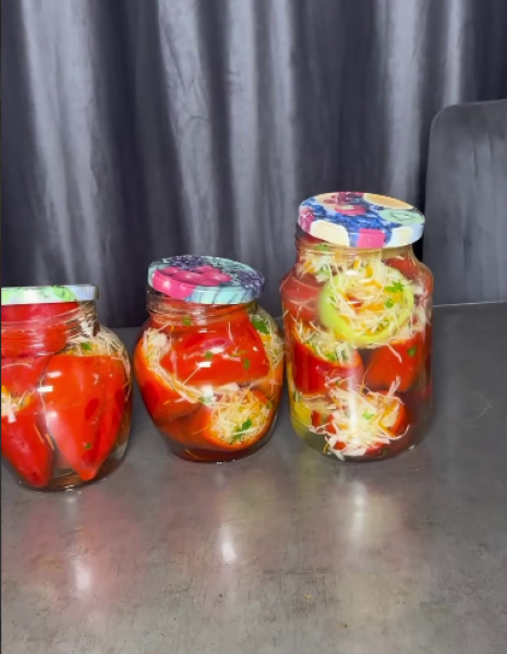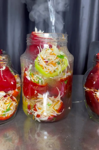 Заливаємо гарячим розсолом, трохи прикриваємо кришками ❤️