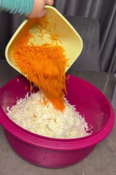 Капусту шаткуємо, моркву на тертці. Часник, гострий перець і петрушку нарізаємо дрібно.
