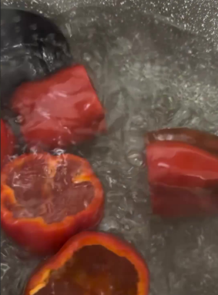 Перець миємо, чистимо, бланшируємо в окропі протягом двох хвилин.