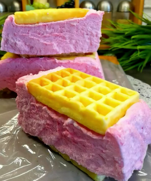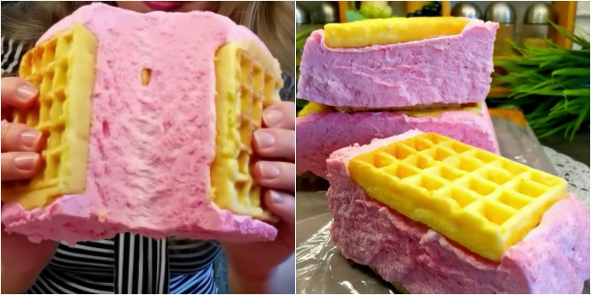 зверху збиту масу і знову вафлі,