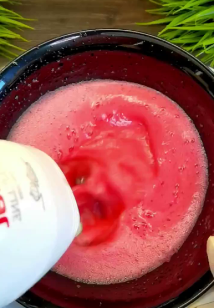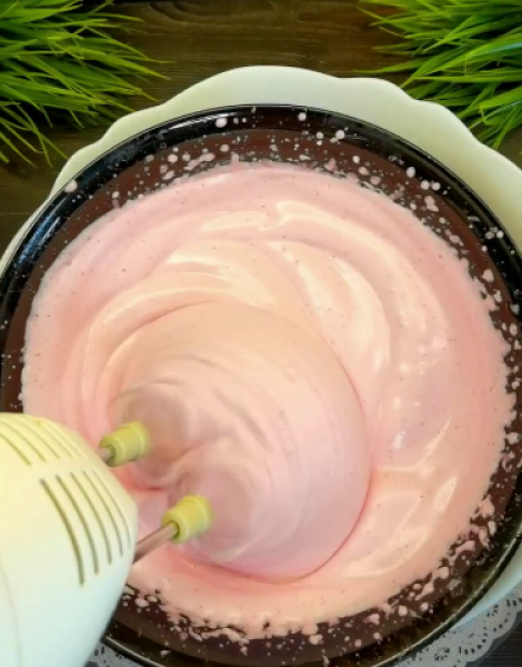 🔻Желе зі смаком, заливаємо гарячою водою, чашу з желейною масою ставимо на іншу чашу з холодною водою і збиваємо 7 – 10 хв, поки маса не стане світлішою і густішою.