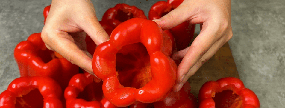 ✅ Солодкий перець ретельно промиваємо, зрізаємо плодоніжку та вичищаємо всі зайві запчастини, не порушивши цілісність перцю.