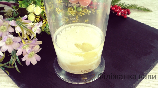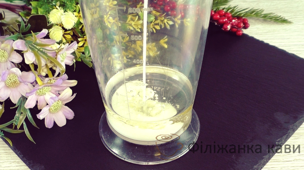 Беремо погружний блендер, включаємо, маса відразу починає густіти. Технологія приготування ( як домашній майонез ).