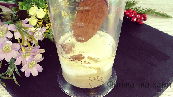 Додати какао, я додаю 2 десертні ложки. Кількість какао за Вашим смаком від 1 до 2 столових ложок на дану кількість інгредієнтів.