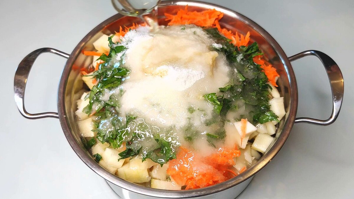 3. Слідом додаю подрібнену зелень петрушки ( зелені використовую багато, так смачніше ).