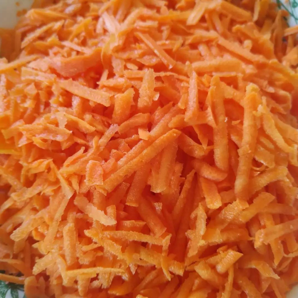 - Морква – 3 шт середнього розміру очистити і натерти на великій тертці.