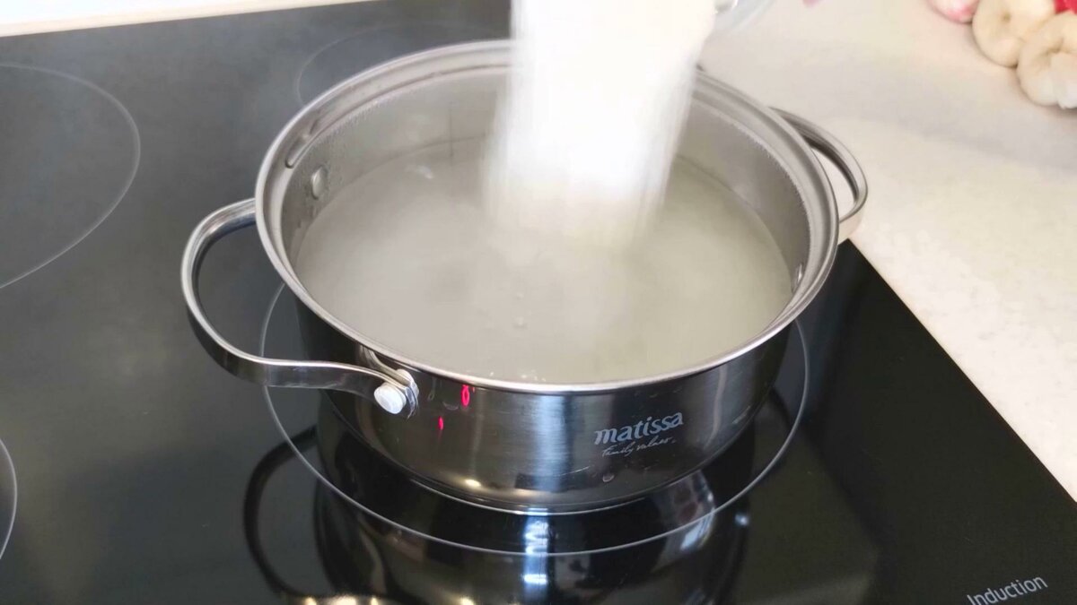 4. Потім доводжу до кипіння воду, додаю сіль. Кипячу розсіл 5 хвилин на середньому вогні ( сіль повинна повністю розчинитися ).