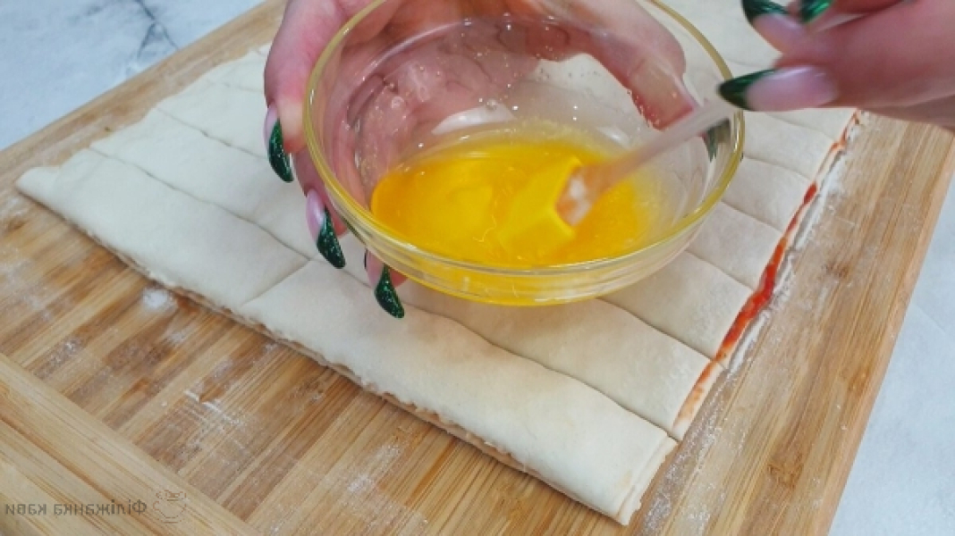 Змащуємо тісто збитим яйцем.
