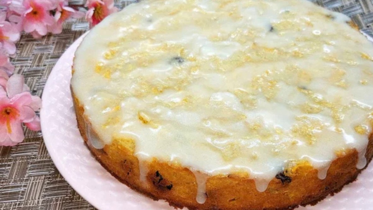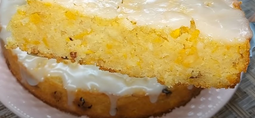 - Готовий пиріг поливаємо заливкою.