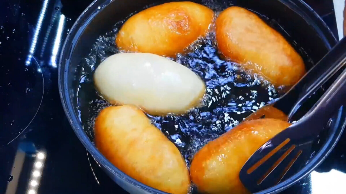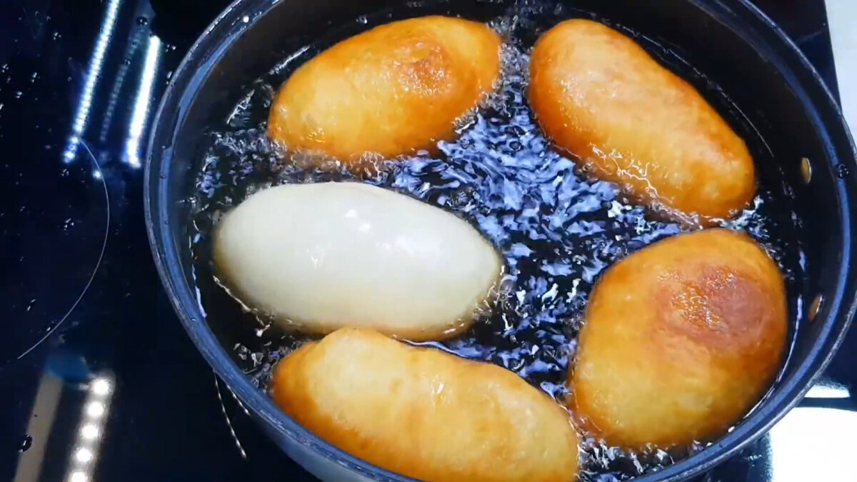 Смажимо на розігрітій олії на помірному вогні з кожного боку. Пиріжки починають збільшуватися в обсязі в процесі смаження, зовсім як дріжджові! А все завдяки соді і кисломолочним продуктам в складі тіста.
