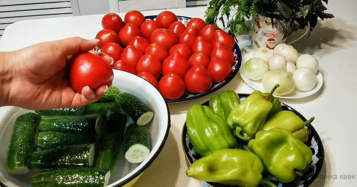 Напевно, почну з того, що строго дотримуватися пропорцій основних інгредієнтів не варто. Якщо ви любите огірки, додавайте їх більше, ніж помідорів і перцю. І навпаки. Те ж стосується і цукру з сіллю. У процесі готування обов’язково пробуйте салат на смак. Для даної кількості овочів я використовувала 7 банок на 700 мл.