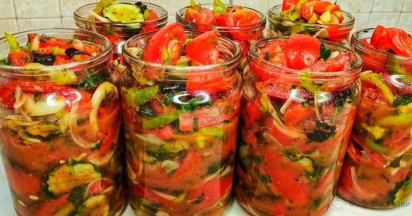 Мої родичі називають його «Вздовж по городу». Ця консервація зібрала в банку всі самі мої улюблені літні овочі і зелень. Посеред зими саме ця закуска піднімає настрій.