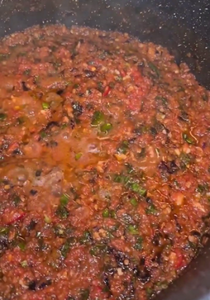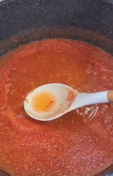 У процесі варіння із томату прибираємо зайву рідину, щоб соус був густий!