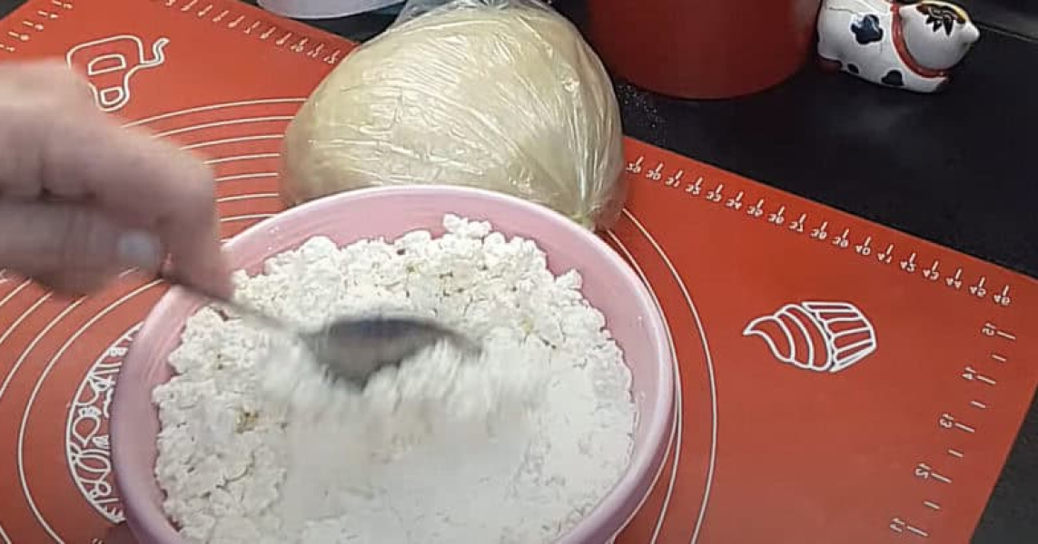 У каструлі молоко з сіллю доводжу до кипіння. Замішую тісто у чаші блендера, частину борошна просіюю у чашу, вливаю кипляче молоко, замішую. Тоді додаю яйця, замішую. Додаю олію, вершкове масло і замішую. Додаю решту борошна, замішую однорідне тісто. Перекладаю на стіл і вимішую ще трішки руками. Перекладаю тісто у харчову плівку та залишаю на 20-30 хвилин.