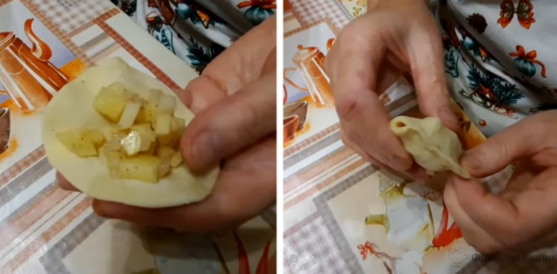 Цей рецепт має ще одну особливість. Вона стосується ліплення вареників. Щоб начинка не була сухою, скріплюючи краю тіста, збоку потрібно залишити невелику дірочку. Зліплені вареники потрібно відразу ж відварити або заморозити, інакше почне виділятися картопляний сік. А це вплине на цілісність.
