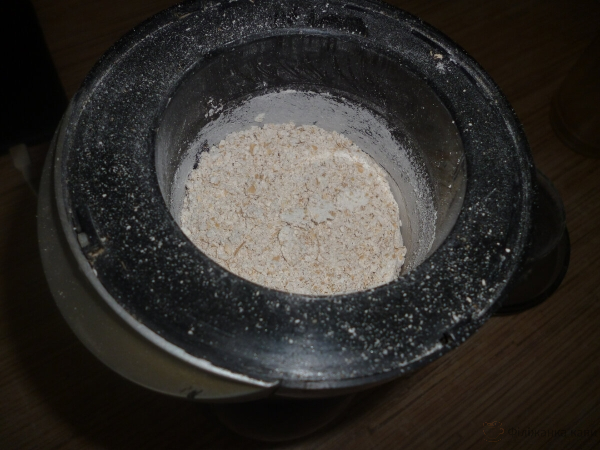 Один стакан пластівців залишаємо цільними, а другий перемелюємо в кавомолці або в якомусь іншому подрібнювачі.