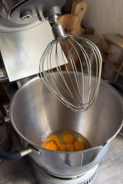 Яйця збиваємо з ваніліном і щіпкою солі пару хвилин.