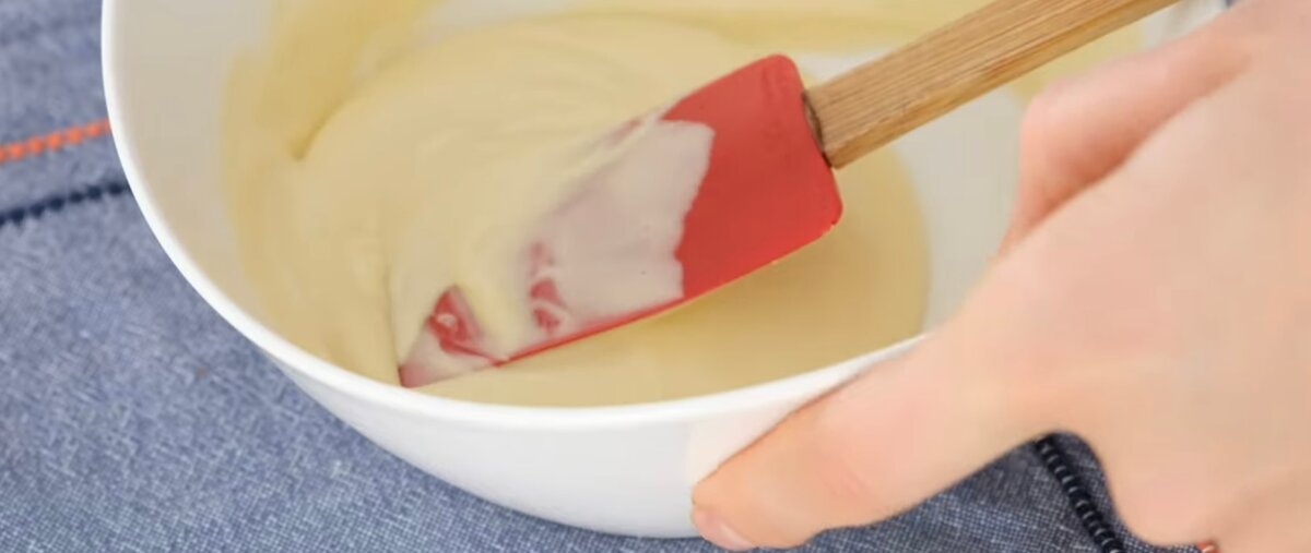 Вливаємо яйце, змішуємо міксером.