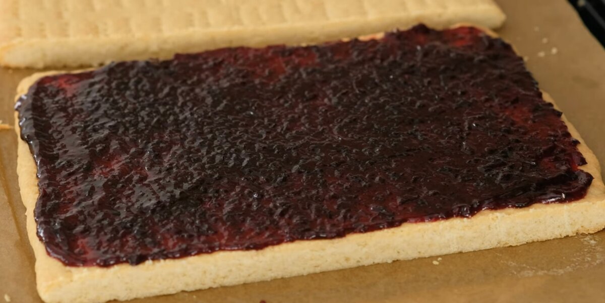 Розрізаємо навпіл і одну половину змащуємо варенням.