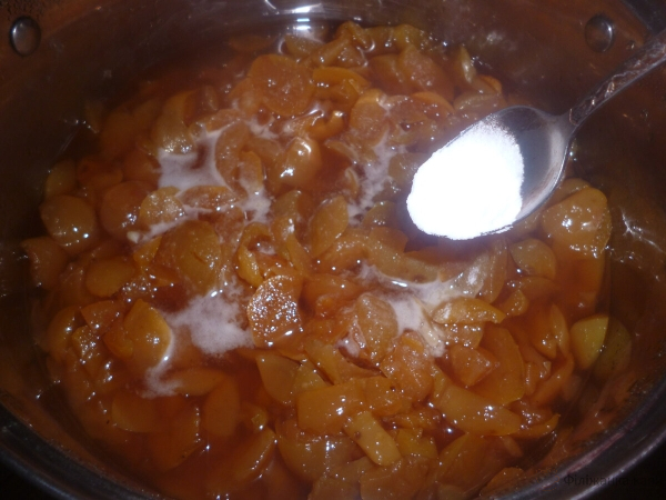 Нагріваємо яблука, помішуючи до повного розчинення цукру.