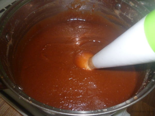 «Згущене молоко» пробиваємо блендером до гладкої однорідної маси без грудочок.