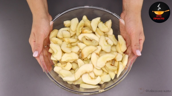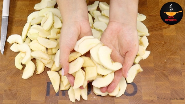 Яблука очищаємо від шкірки, видаляємо серцевину і нарізаємо на часточки.