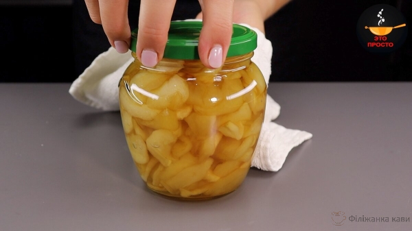Щоб яблука не спливали, кладемо який-небудь гніт. Я кладу тарілку. Все, залишаємо в такому вигляді мінімум на 6 годин, можна і на ніч.