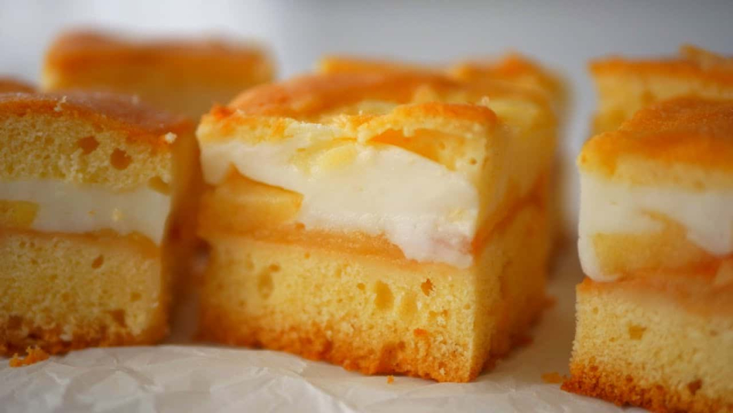 Яблучний пиріг з кремом – кексова основа, що тане, чудово доповнюється соковитою яблучною начинкою з пудинговим кремом.
