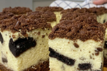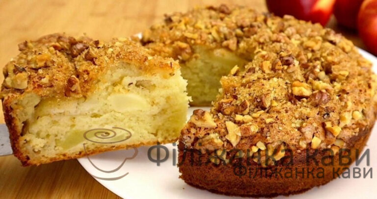 Через 15-20 хвилин пиріг зверху можна накрити фольгою, щоб посипка не підгоріла.