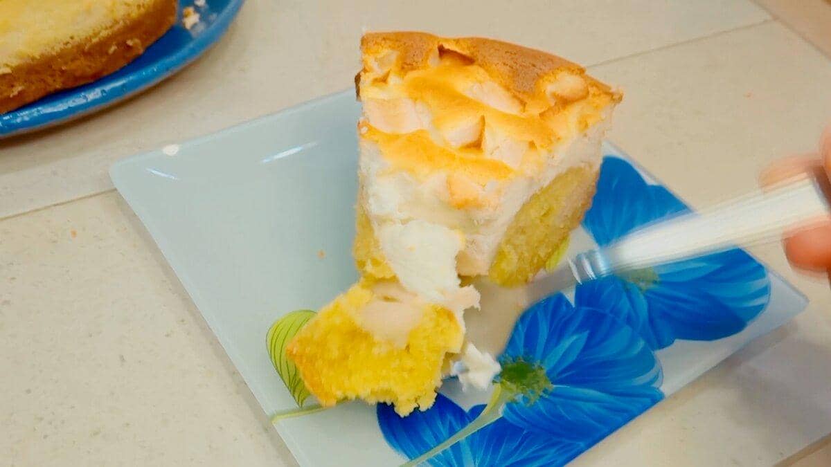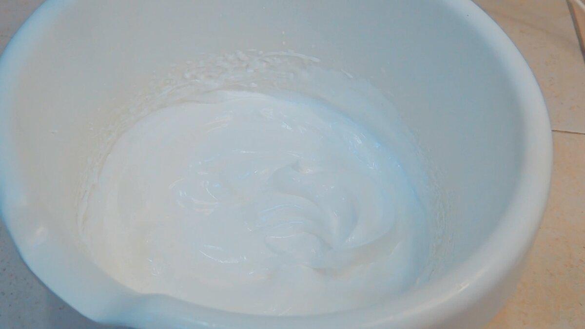 Поки випікається основа, приготуємо сирний шар. Відокремлюємо білки від жовтків. Збиваємо охолоджені білки до утворення легкої білої піни, коли маса посвітліла, поступово всиваем цукор, продовжуючи збивати до ущільнення і збільшення маси, до стійких піків не обов’язково.