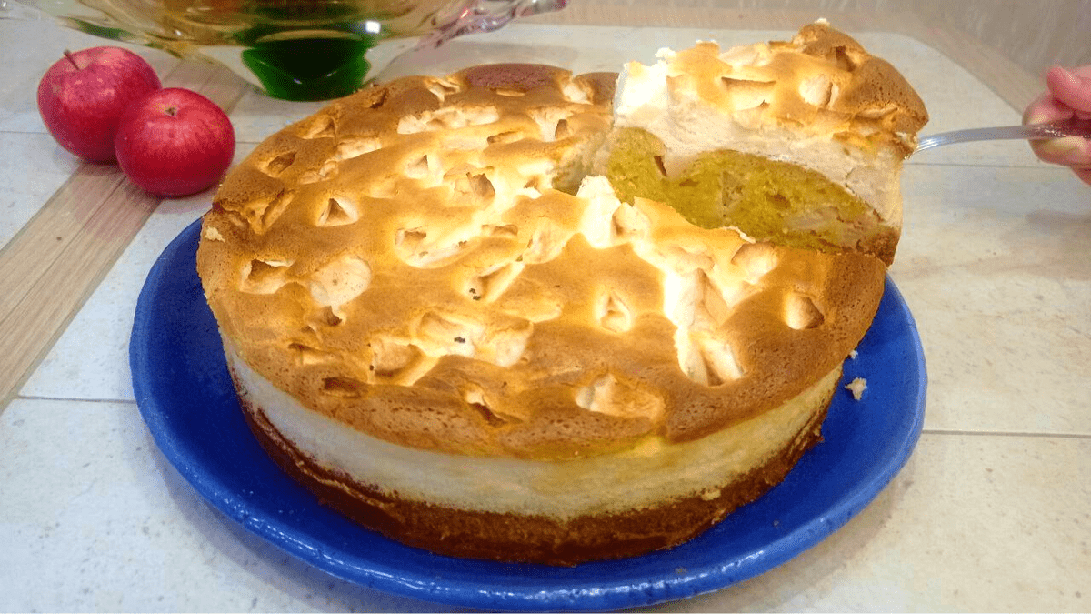 Простий в приготуванні, красивий і дуже смачний пиріг. В його основі пишний, соковитий корж, а в якості начинки – кисло-солодкі яблука в ніжній і повітряній сирний масі.