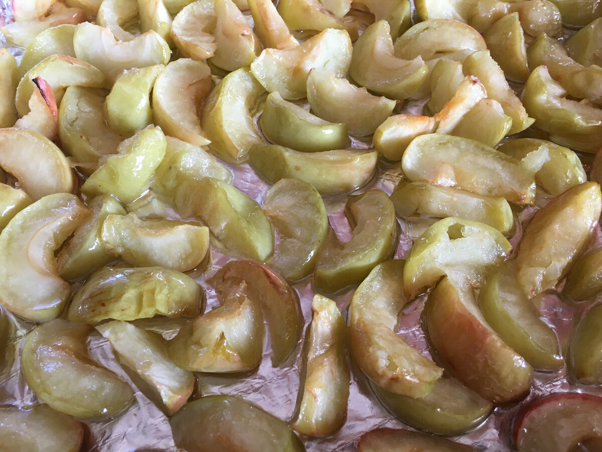 Для приготування таких яблук не потрібна каструля, а деко не потрібно мити, якщо його застелити фольгою. І, нарешті, контрольний постріл — цукру багато не потрібно, просто мінімум, для смаку і збереження.