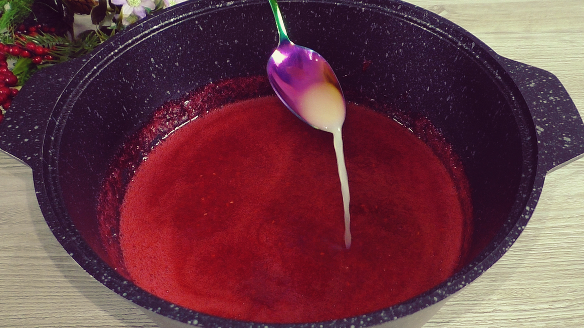 За бажанням можна додати лимонний сік, я на дану кількість інгредієнтів додаю 1 ст. л. лимонного соку, щоб малиновий джем не втратив свій колір.
