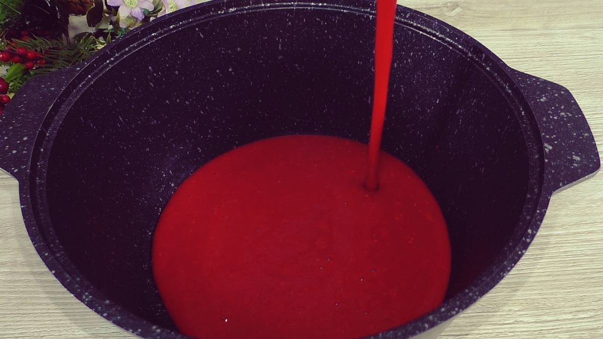 Перелити м’якоть малини в посуд для приготування.