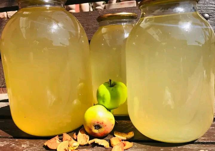 З соковитих яблук напій буде темніший, а з менш соковитих – світліший. Фото з інтернету, бо минуло-річний “Живчик ” випили, а цього року ще не закривала. Нехай смакує!